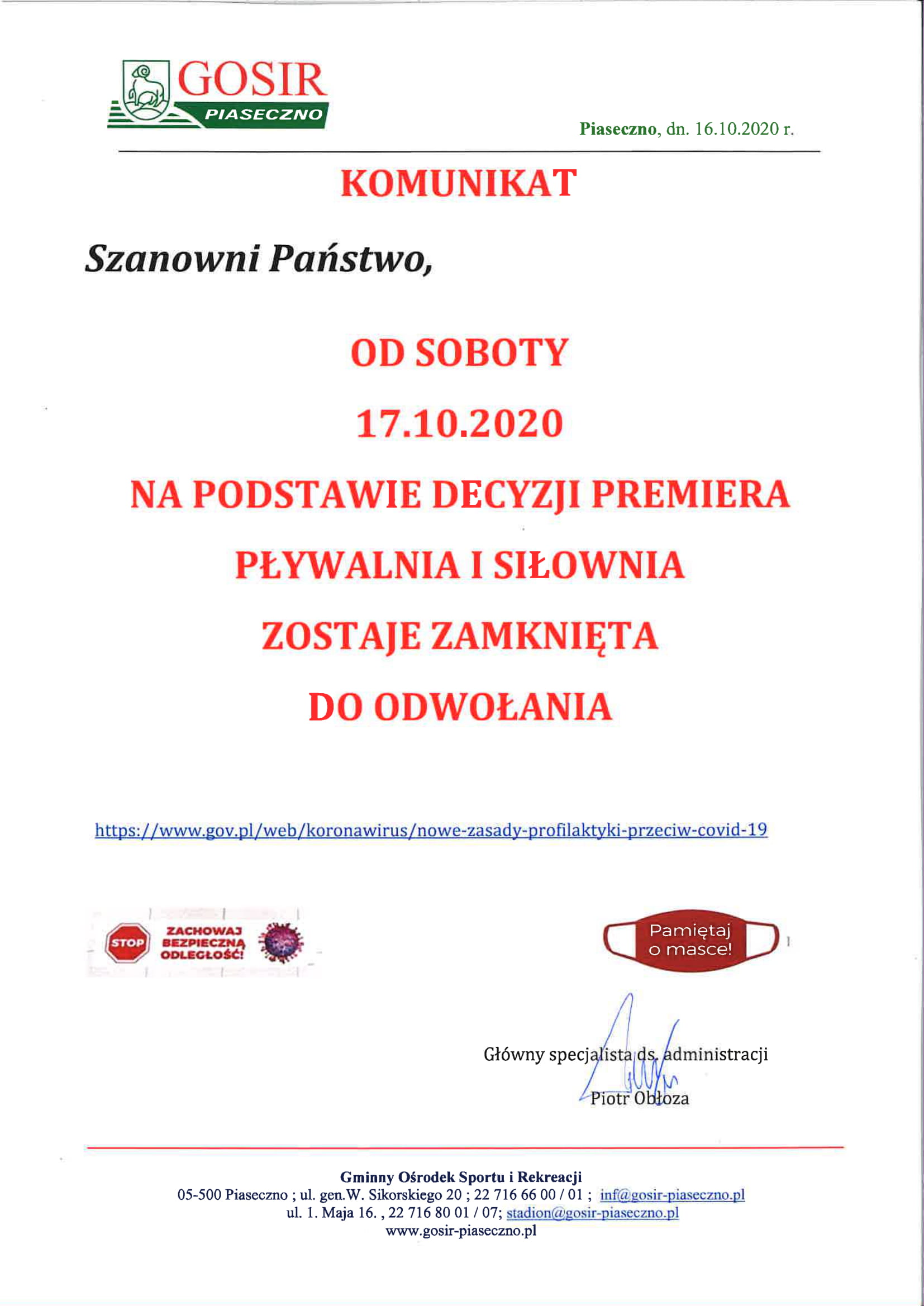 - zawieszona działalność basenów, aquaparków i siłowni.
