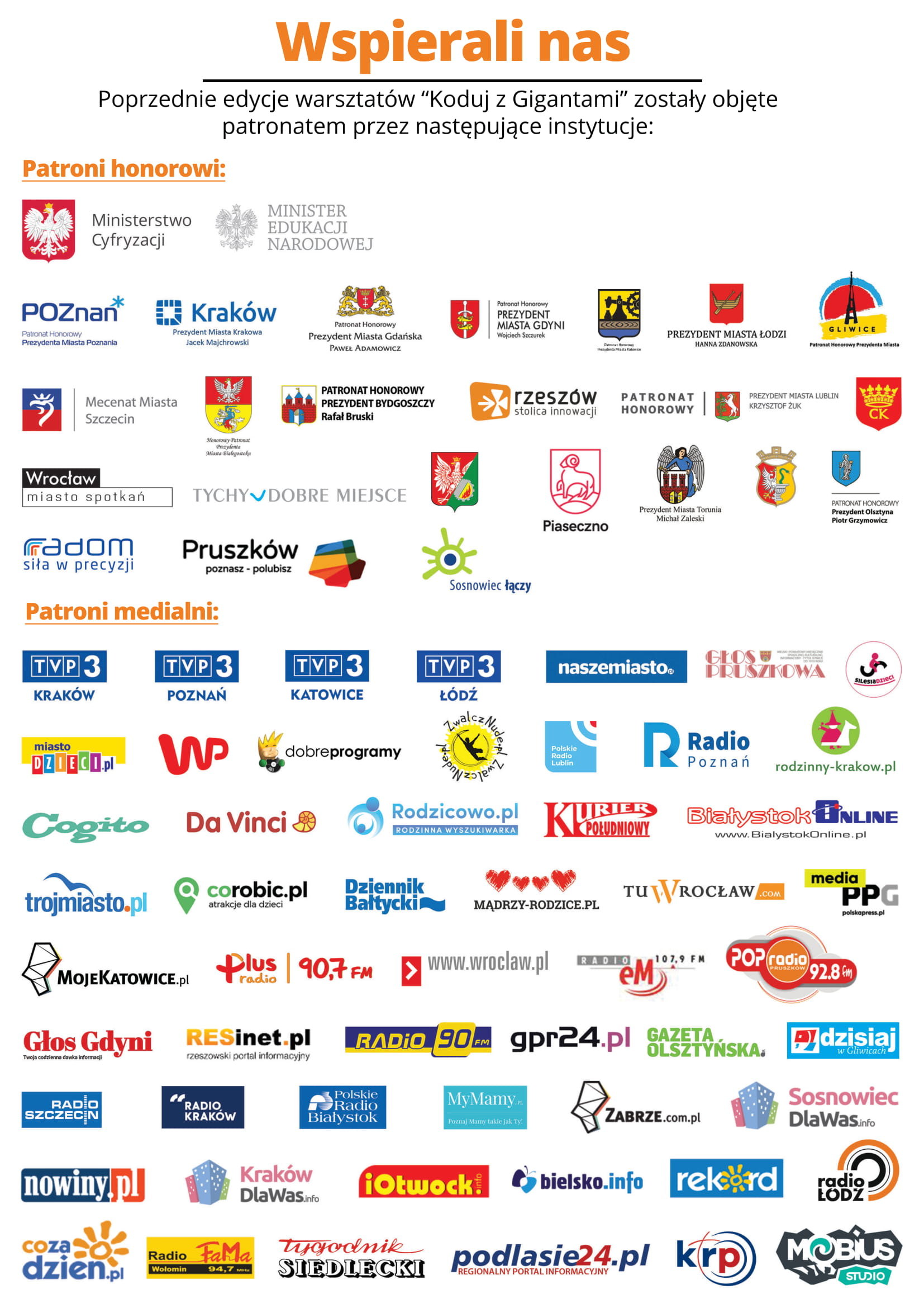 „Koduj z Gigantami” to darmowe warsztaty z nauki programowania dla dzieci i młodzieży, organizowane w całej Polsce pod patronatem Ministra Cyfryzacji oraz Ośrodka Rozwoju Edukacji.