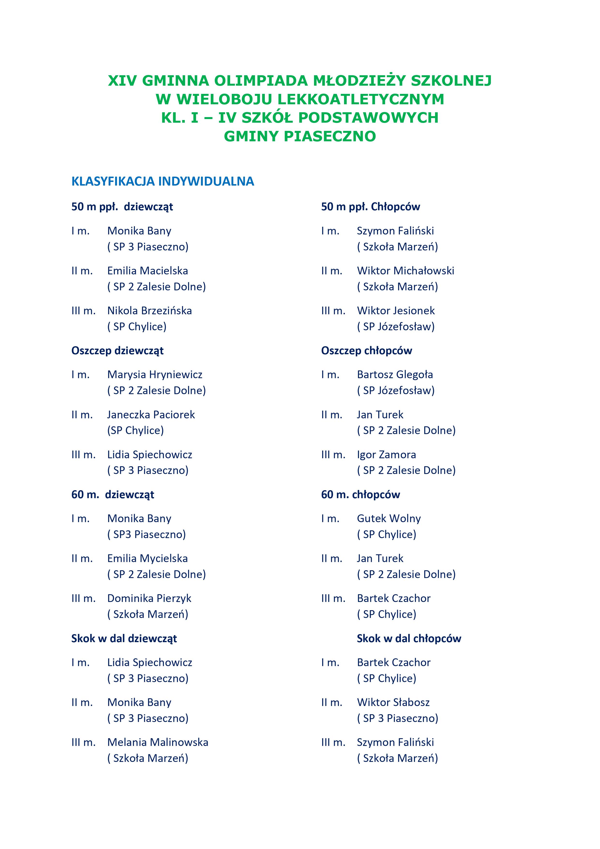 GMINNEJ OLIMPIADY MŁODZIEŻY SZKOLNEJ SZKÓŁ PODSTAWOWYCH GMINY PIASECZNO,