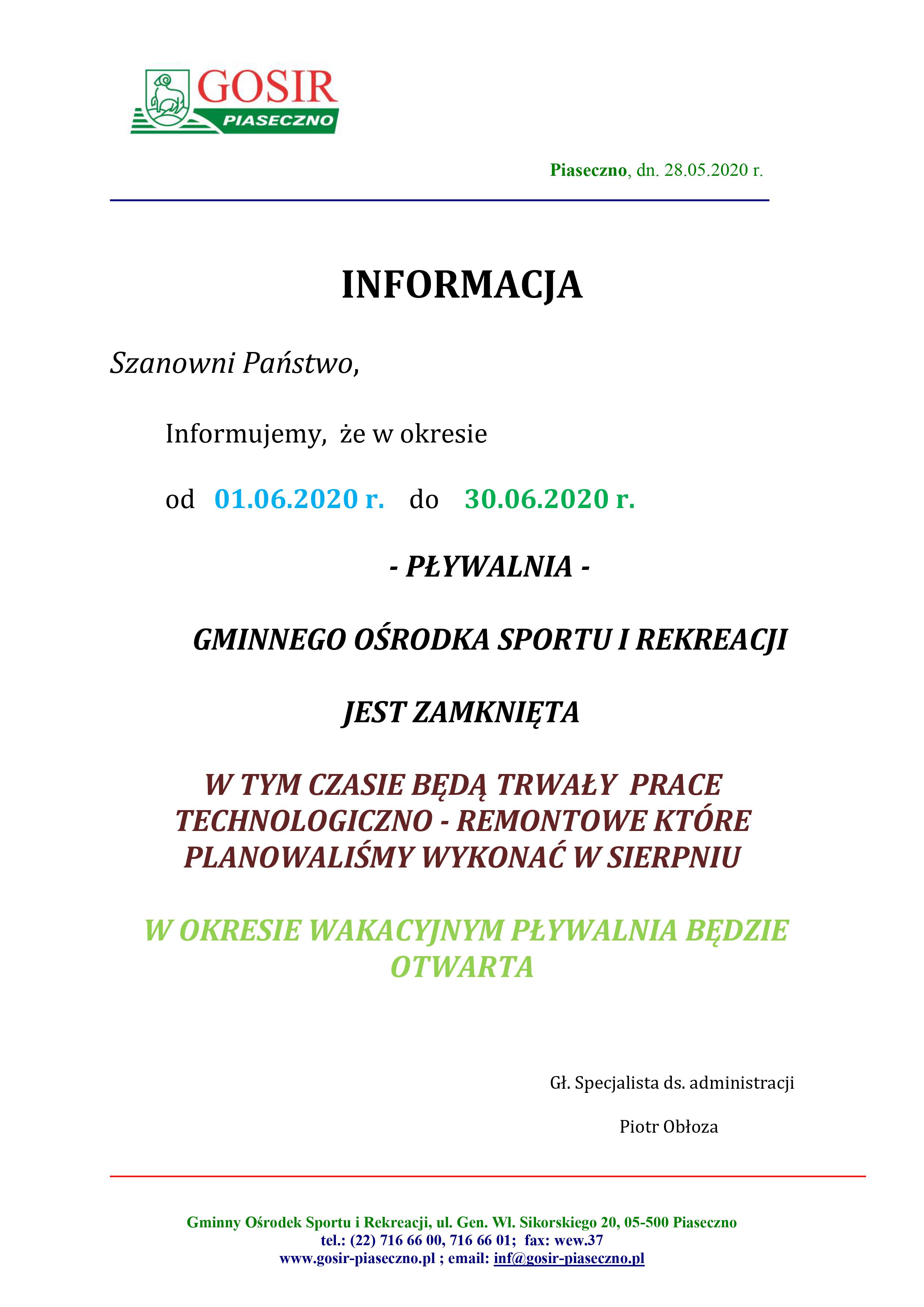 - zapisy elektroniczne (od 15.06.2020r.) na stronie GOSiR https://gosir-piaseczno.pl/zapisy