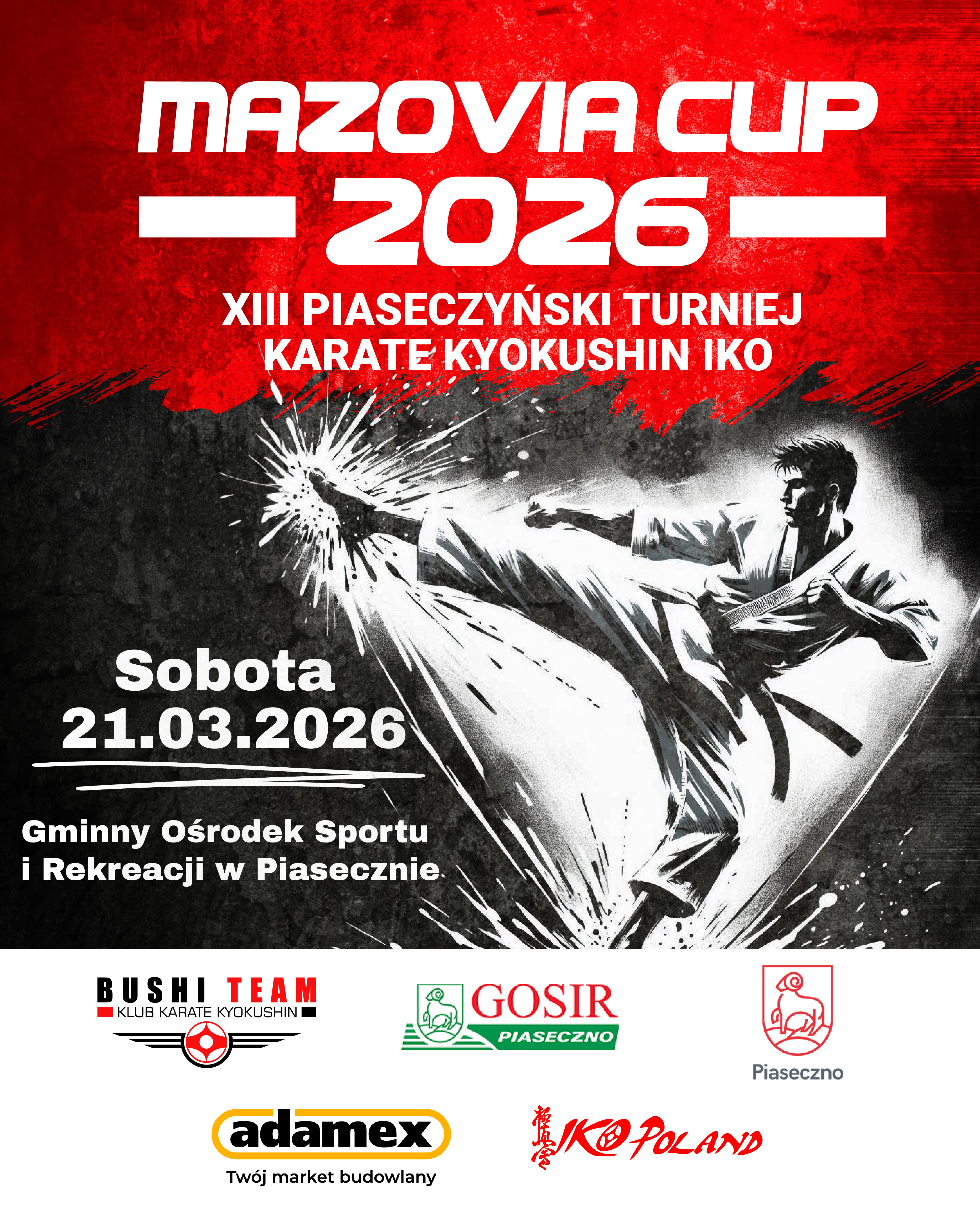 Już 21 marca 2026 roku odbędzie się XIII edycja Piaseczyńskiego Turnieju Karate Kyokushin IKO – „Mazovia Cup”. To jedno z ważniejszych wydarzeń karate w regionie, które co roku przyciąga zawodników z klubów z całej Polski.