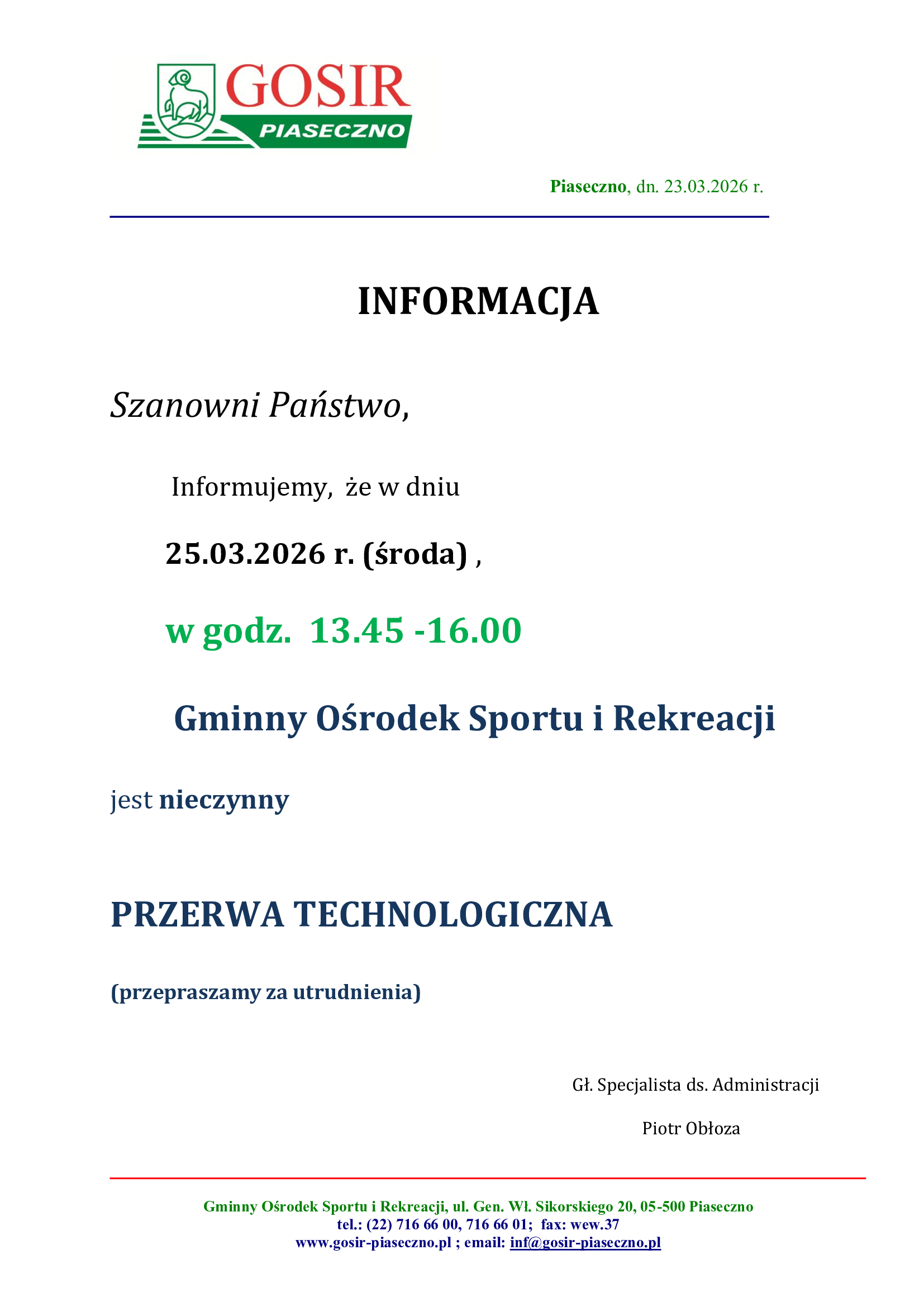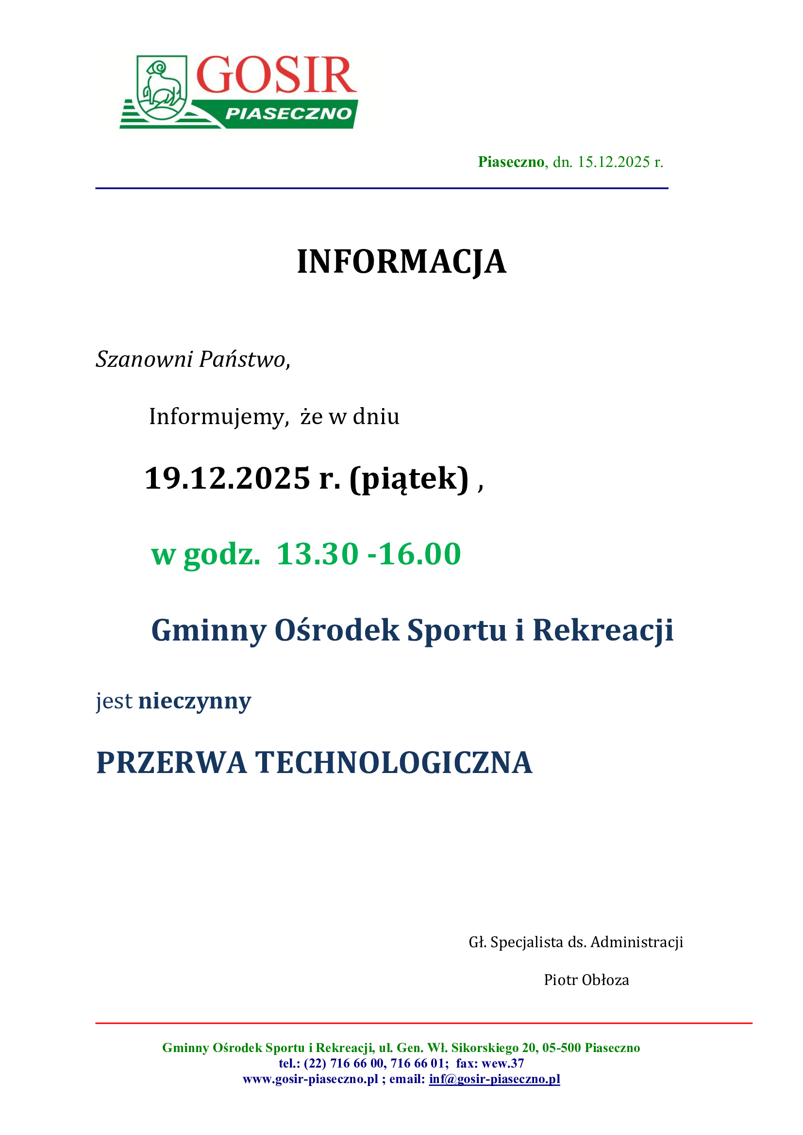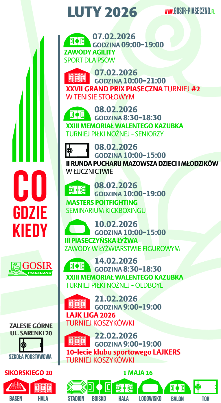 Na zbiórkę zapraszamy na halę Gminnego Ośrodka Sportu i Rekreacji w Piasecznie przy ul. Sikorskiego 20 o godzinie 8:50.