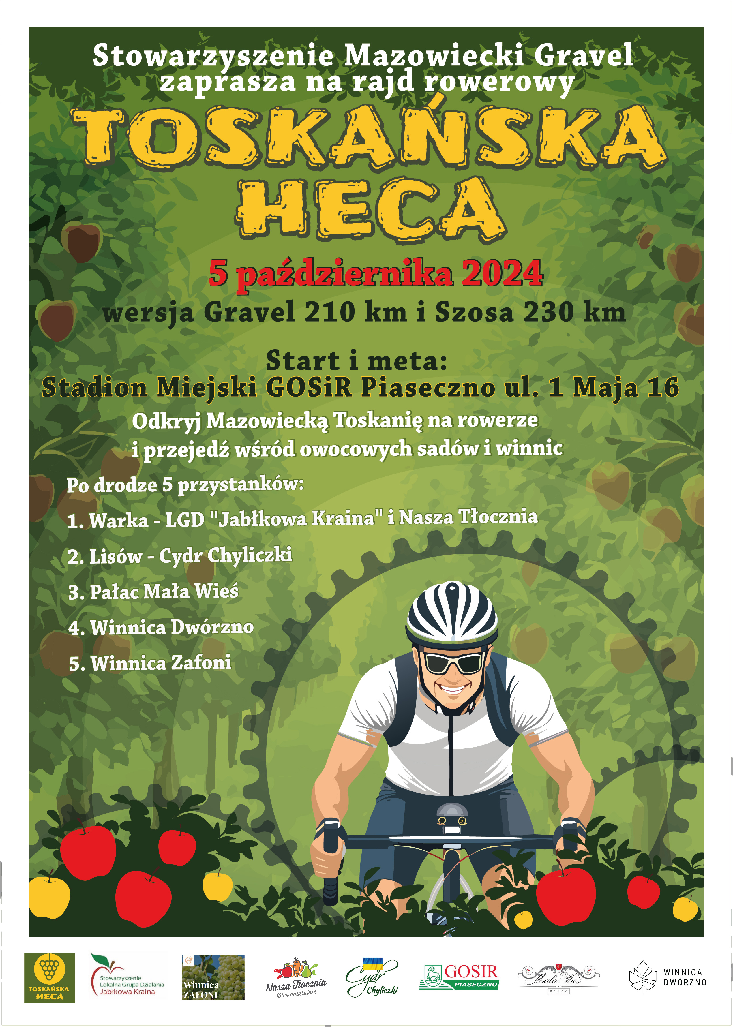 W sobotę 5 października grupa ponad 150 osób ruszy na trasę wyjątkowego rajdu rowerowego pod nazwą Toskańska Heca. Uczestnicy przejadą po z góry określonym szlaku zwiedzając najpiękniejsze zakątki rejonu zwanego często Mazowiecką Toskanią.