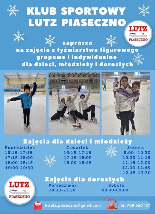 Klub Sportowy LUTZ Piaseczno rozpoczyna w dniu 04 listopada zajęcia z łyżwiarstwa figurowego w nowym sezonie 2024/2025.