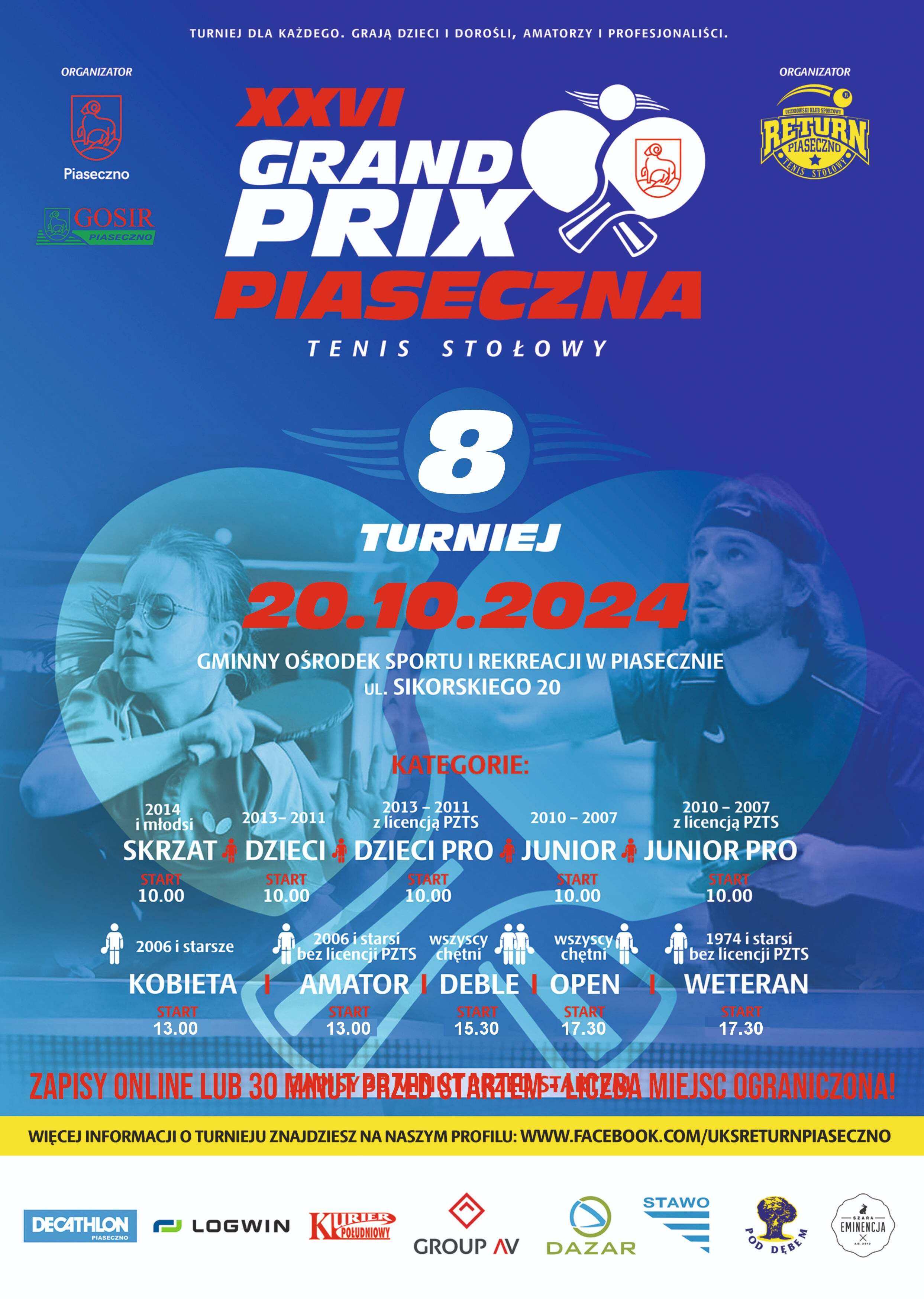 Już w najbliższą niedzielę 20 października rozegramy ósmy turniej XXVI edycji Grand Prix Piaseczna w tenisie stołowym.