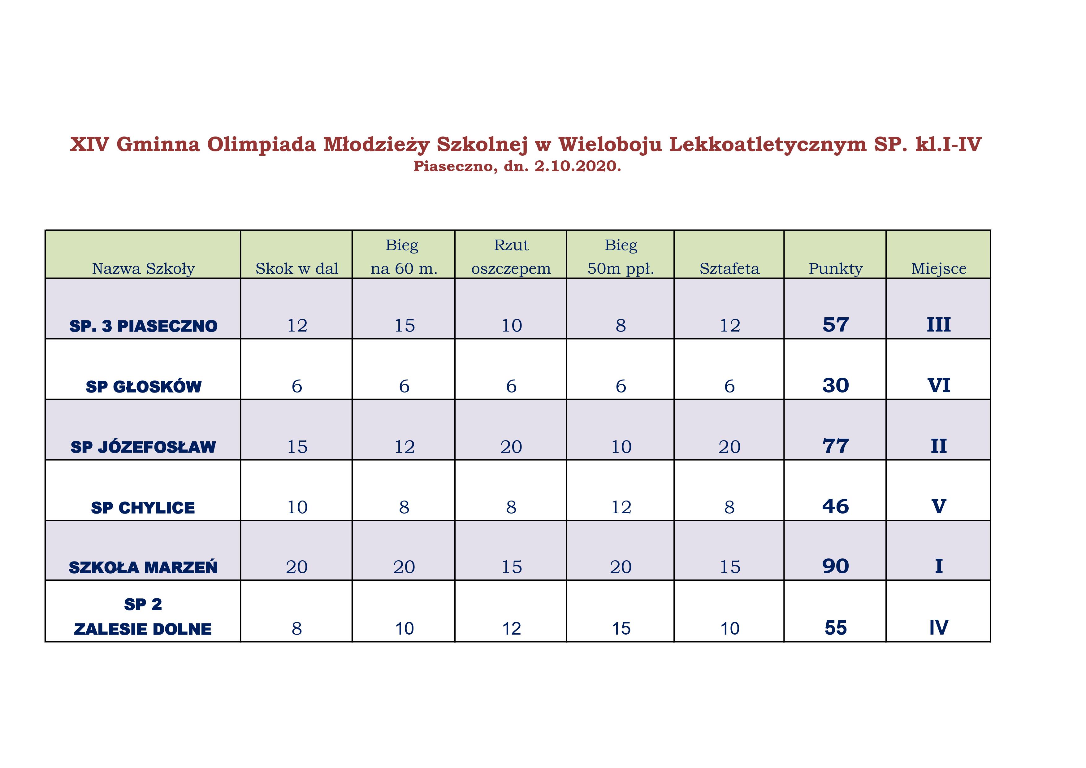 GMINNEJ OLIMPIADY MŁODZIEŻY SZKOLNEJ SZKÓŁ PODSTAWOWYCH GMINY PIASECZNO,