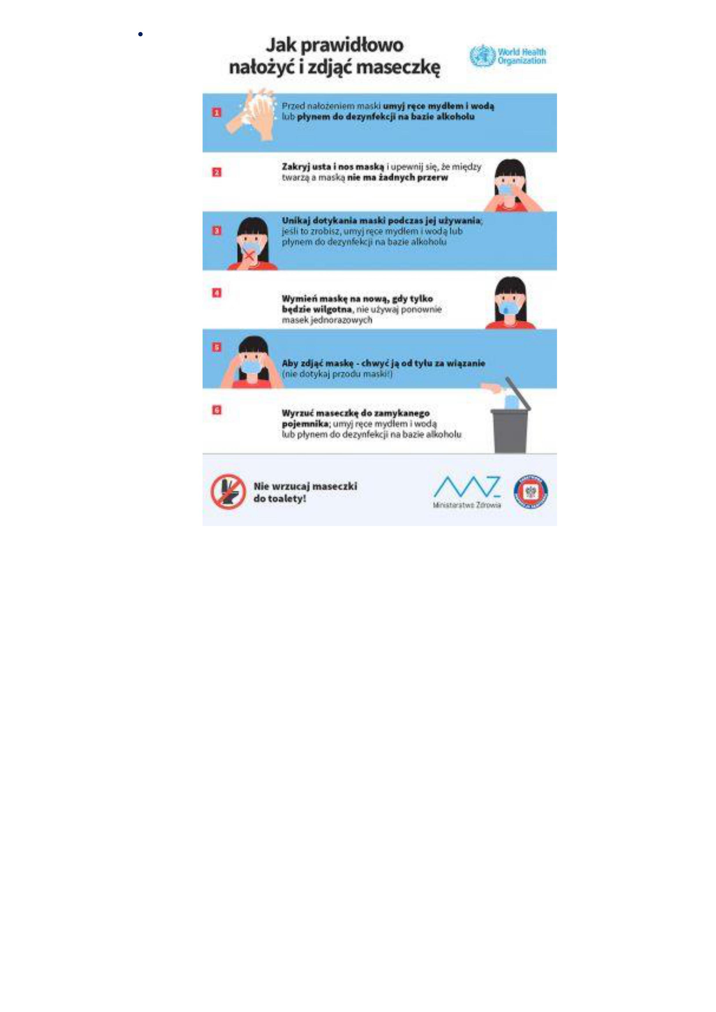 - Noś osłonę ust i nosaz wyłączeniem kąpieli i pływania w basenie.