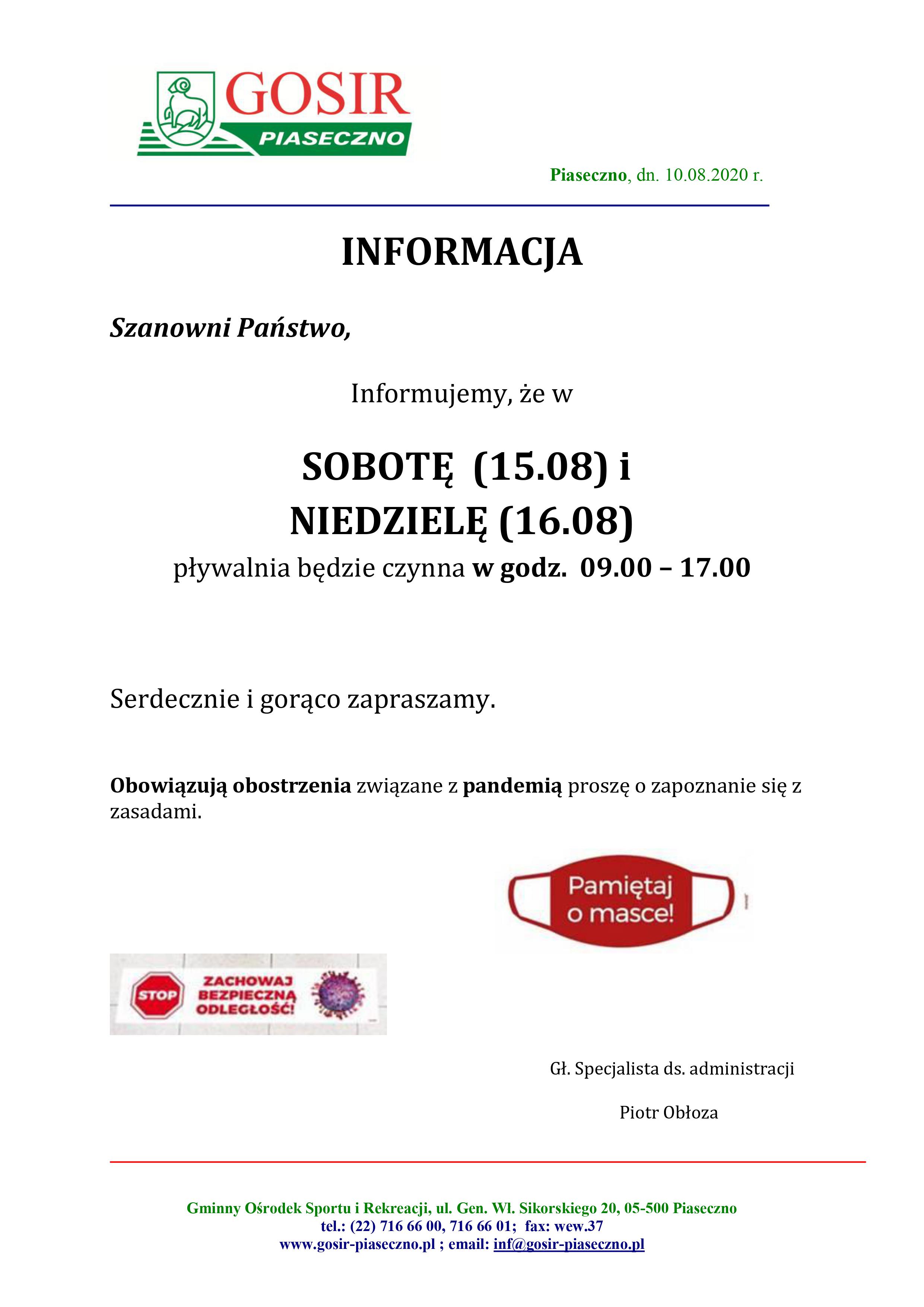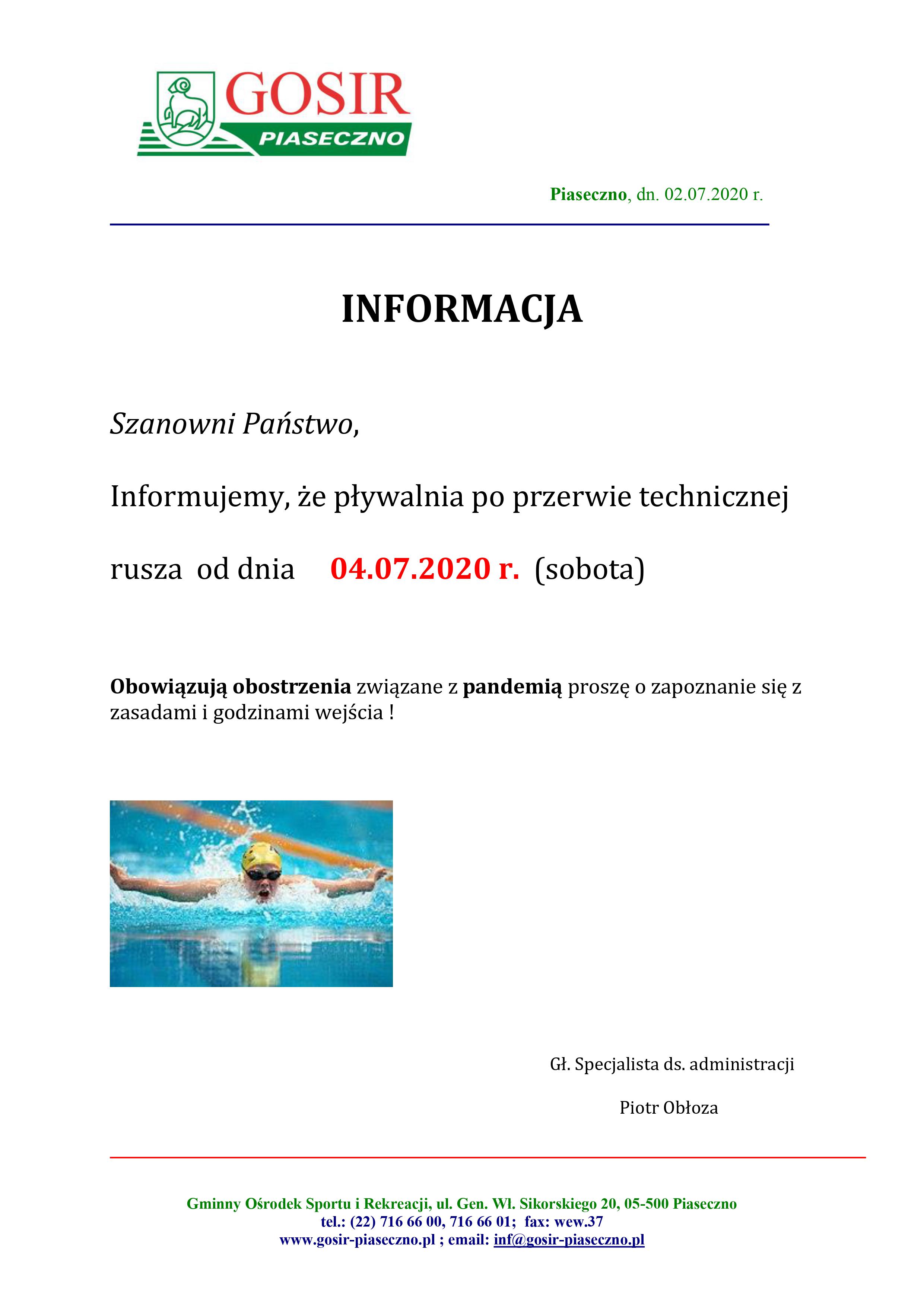 - Niniejszy dokument stanowi okresowe uzupełnienie obowiązującego regulaminu korzystania z pływalni GOSiR w Piasecznie.