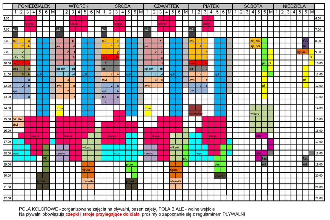 W odpowiedzi na liczne zapytania informujemy, że zapisane dzieci przyprowadzamy na godzinę 9:00 do Gminnego Ośrodka Sportu i Rekreacji w Piasecznie mieszczącego się przy ul. Gen. Wł. Sikorskiego 20 (hala sportowa, pływalnia). W załączniku znajdą Państwo szczegółowy plan zajęć.