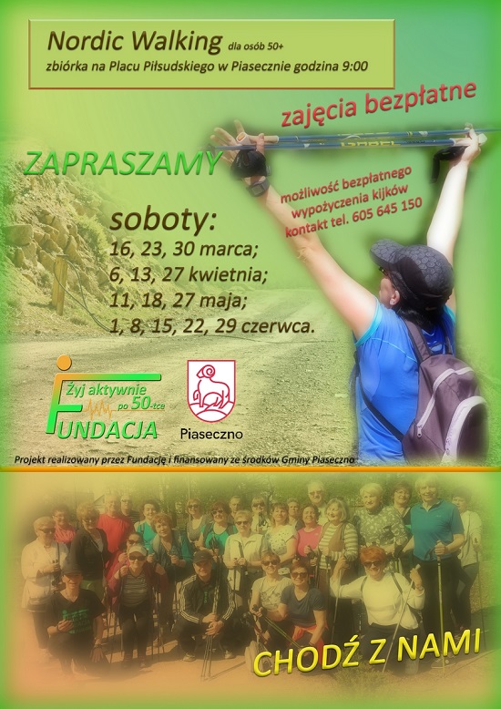 Z radością informujemy, iż 16.03.2019 (sobota) startujemy z kolejną edycją bezpłatnych zajęć Nordic Walking dla osób 50+.